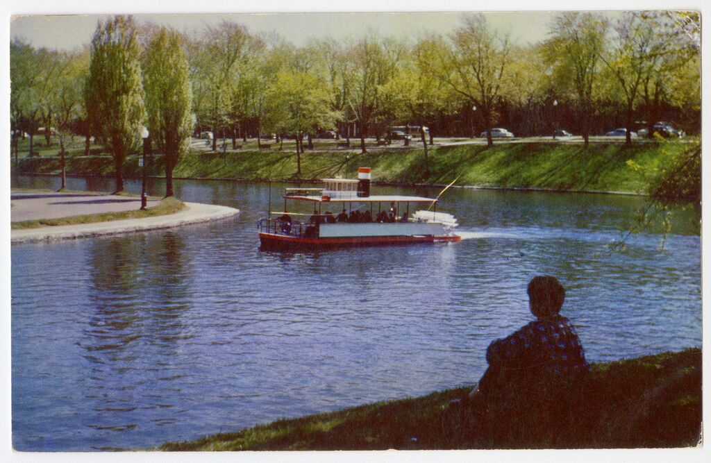 En gondole sur l'étang, parc Lafontaine, Montréal, Qué.