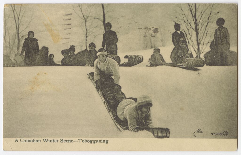 A canadian winter scene, tobogganing