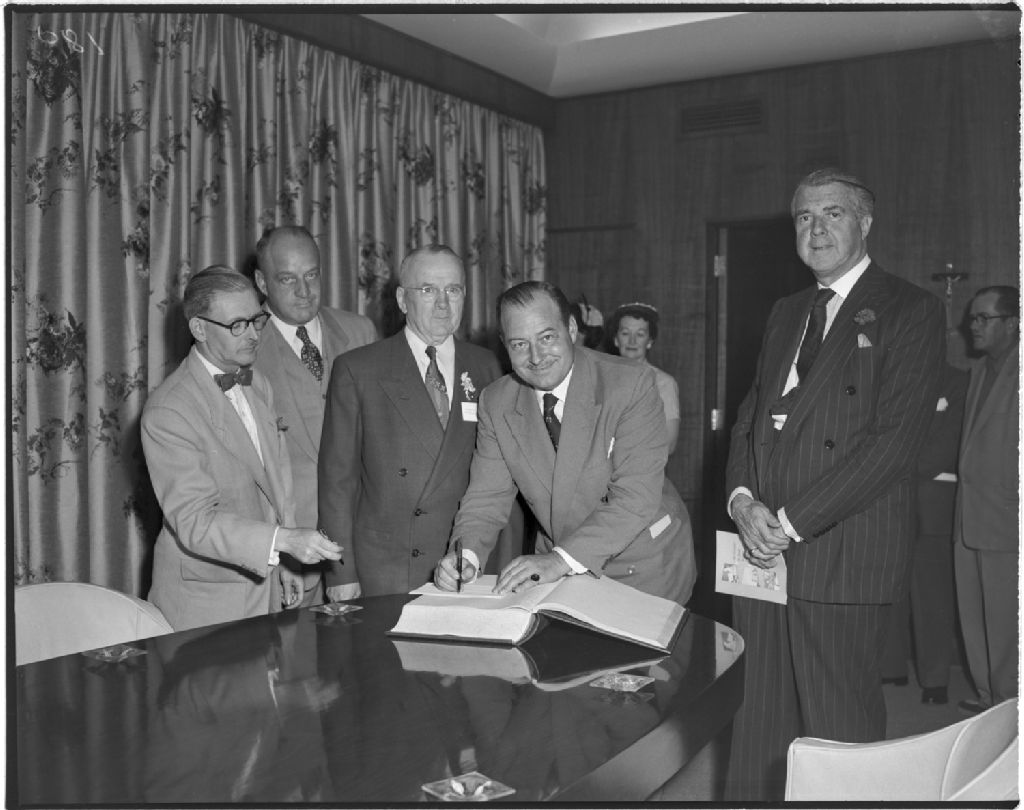 Visite du journal "Le Droit", 1 juin 1955, Archives nationales à Gatineau, Fonds Champlain Marcil, (07H,P174,S1,D5693), Attribuée à Champlain Marcil.