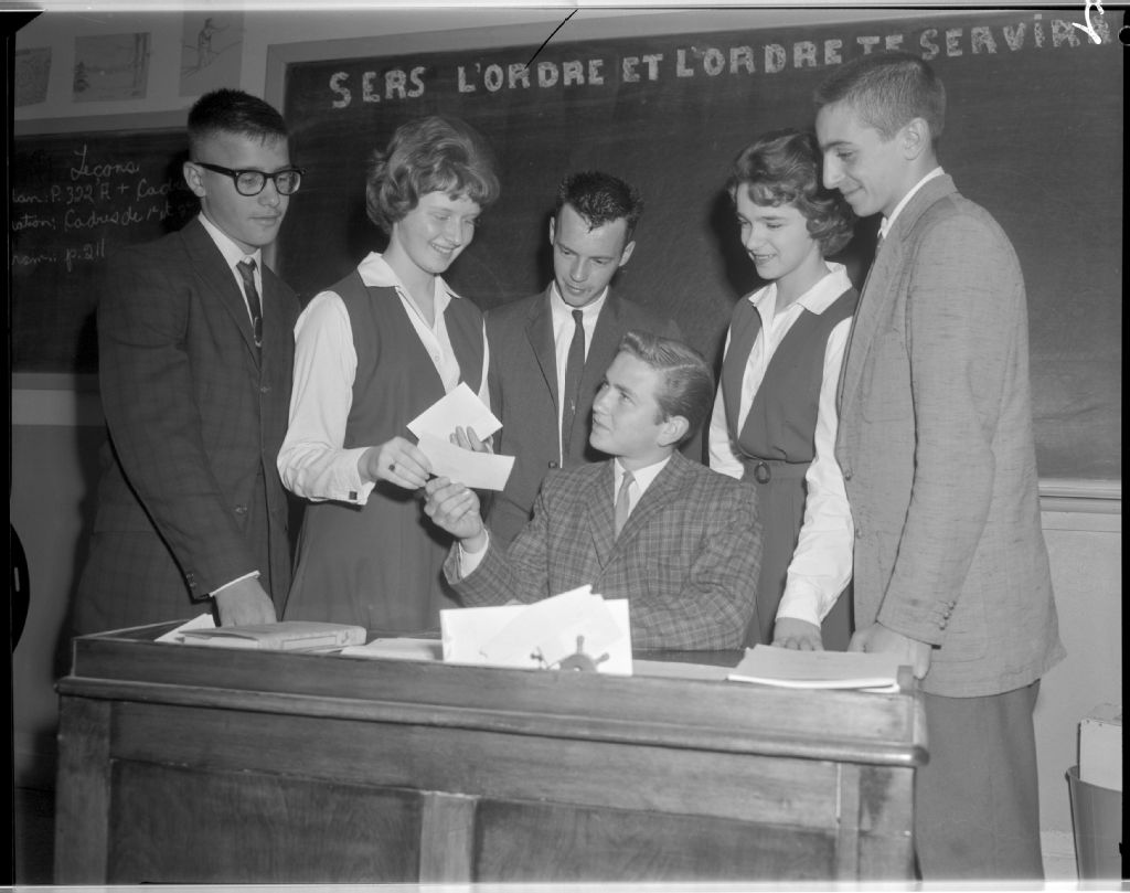 Gagnants d'un concours de français de l'École Labelle à Aylmer, 28 septembre 1962, Archives nationales à Gatineau, Fonds Champlain Marcil, (07H,P174,S1,D28367), Attribuée à Champlain Marcil.