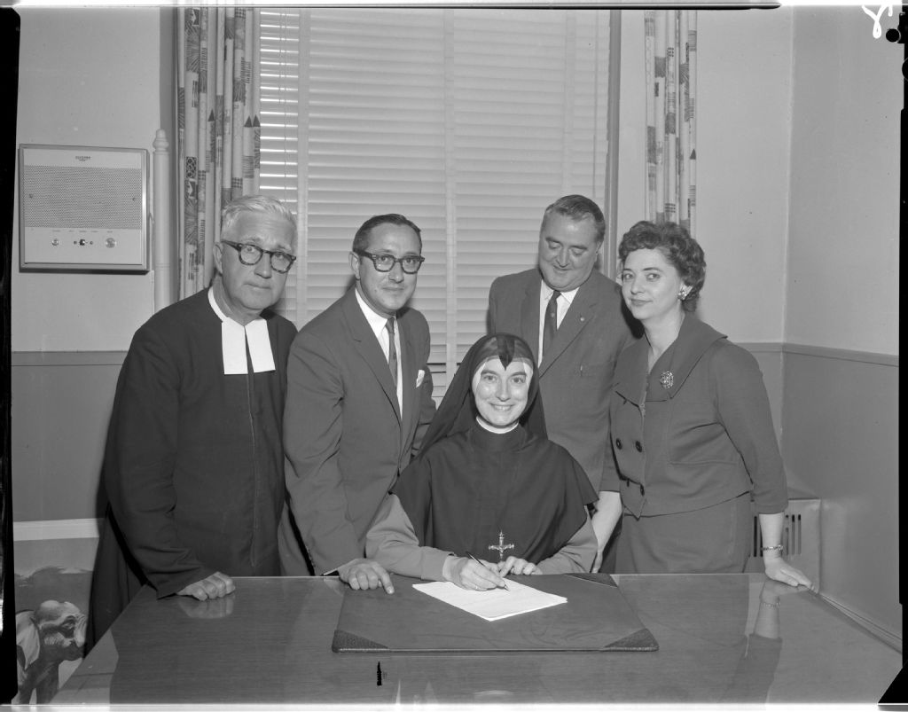 Exécutif de l'unité régionale du syndicat de l'École Guigues d'Ottawa, 2 octobre 1962, Archives nationales à Gatineau, Fonds Champlain Marcil, (07H,P174,S1,D28416), Attribuée à Champlain Marcil.