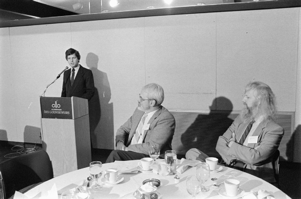 Rencontre entre le ministre des communications du Québec, Monsieur Jean-François Bertrand, et les membres de l'association de sécurité et de l'informatique, 8 février 1984, Archives nationales à Québec, Fonds Ministère des Communications, (03Q,E10,S44,SS1,D84-55), Daniel Lessard.