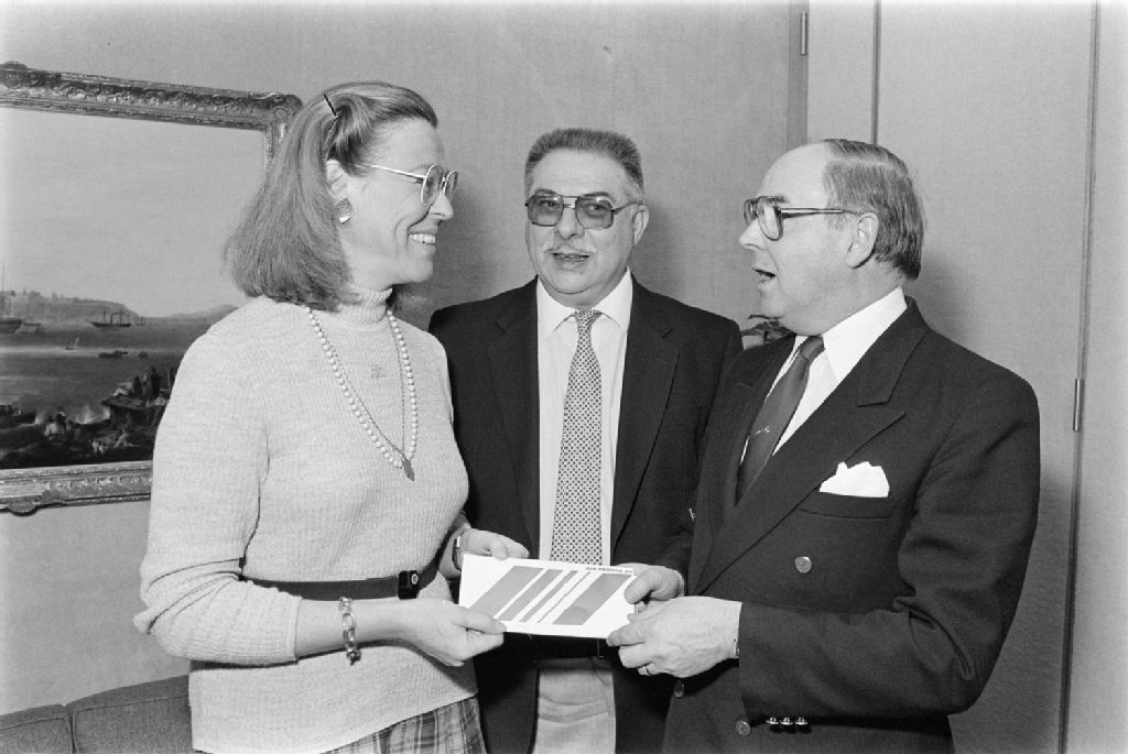 Remise de billets d'avion à Madame Loiselle, commissaires aux fêtes 1534-1984, par la Compagnie Air France.