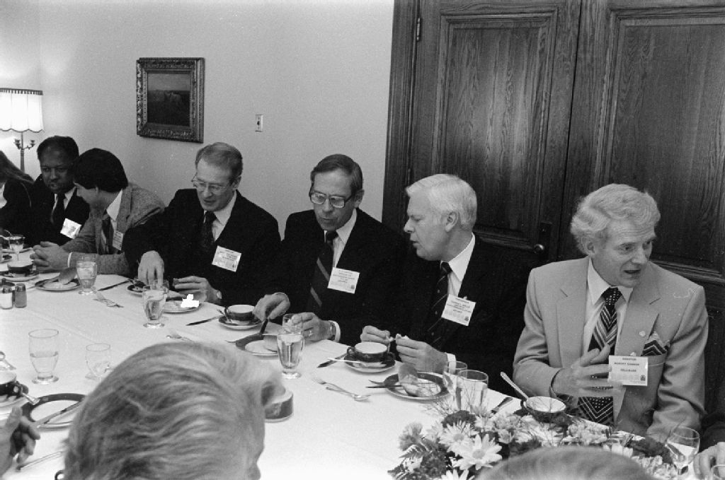 Symposium législatif sur le commerce international à l'Assemblée Nationale du Québec, 27 avril 1984, Archives nationales à Québec, Fonds Ministère des Communications, (03Q,E10,S44,SS1,D84-287), Bernard Vallée.