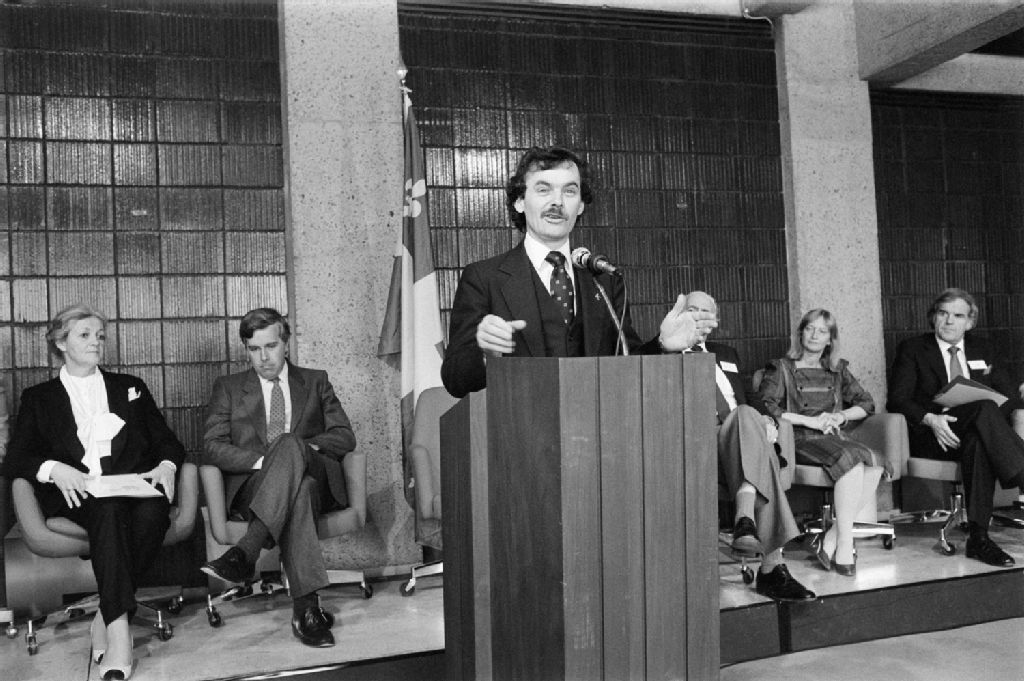 Monsieur Alain Marcoux, ministre des Affaires Municipales, des Travaux publics et de l'Approvisionnement, reçoit le conseil d'administration de la Société Immobilière du Québec