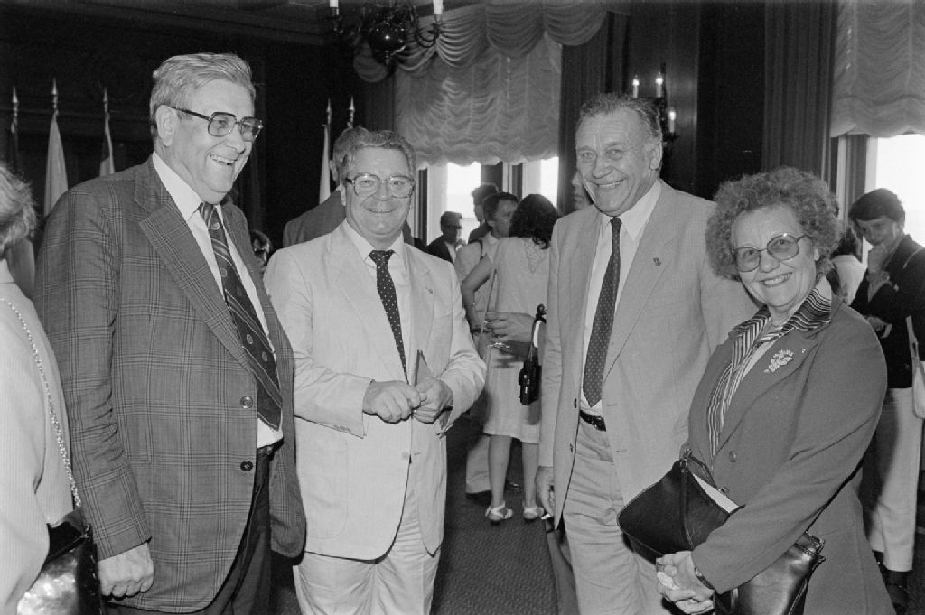 Le ministre Denis Lazure reçoit un groupe de l'Union Internationale Raiffeisen de l'Allemagne à un dîner officiel., 13 juin 1984, Archives nationales à Québec, Fonds Ministère des Communications, (03Q,E10,S44,SS1,D84-372), Daniel Lessard.