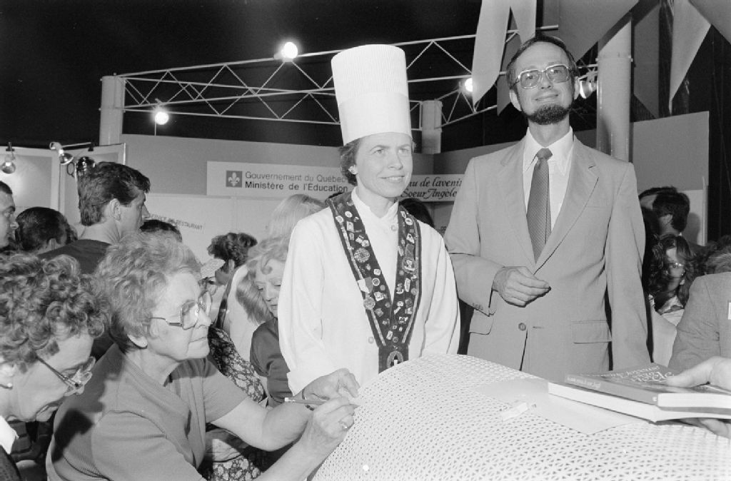- Kiosque du ministère de l'Éducation, tirage du livre de Soeur Angèle en préwence du ministre Yves Bérubé et monsieur Benoît Thibault du service des Communications