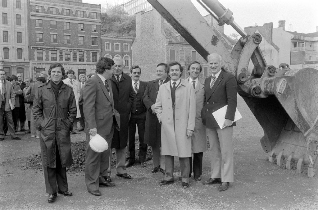 Inauguration des travaux et signature des contrats du Musée de la Civilisation de Québec, 10 octobre 1984, Archives nationales à Québec, Fonds Ministère des Communications, (03Q,E10,S44,SS1,D84-758), Bernard Vallée.