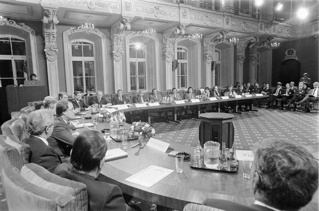 Lors de la signature d'un emprunt bancaire avec le ministre des finances, Monsieur Yves Duhaime, au Salon Rouge de l'Assemblée Nationale