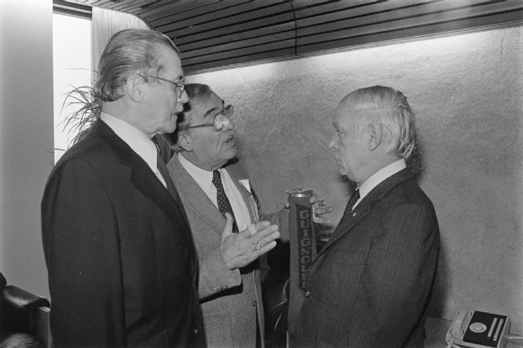 Le Premier ministre, René Lévesque, remet un chèque au représentants de la guignolée