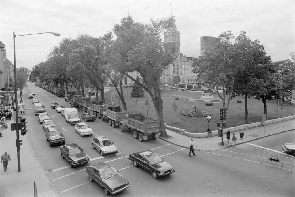 Camionneur sur les Plaines : manifestation des camionneurs artisants, 5 juin 1990, Archives nationales à Québec, Fonds Ministère des Communications, (03Q,E10,S44,SS1,D90-312), Marc Lajoie.