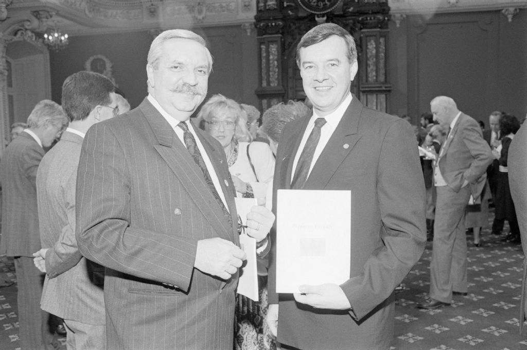 Lancement des célébrations commémoratives du 25ième anniversaire de la création du Régime des rentes et de la Régie des rentes du Québec, 6 décembre 1990, Archives nationales à Québec, Fonds Ministère des Communications, (03Q,E10,S44,SS1,D90-678), Marc Lajoie.