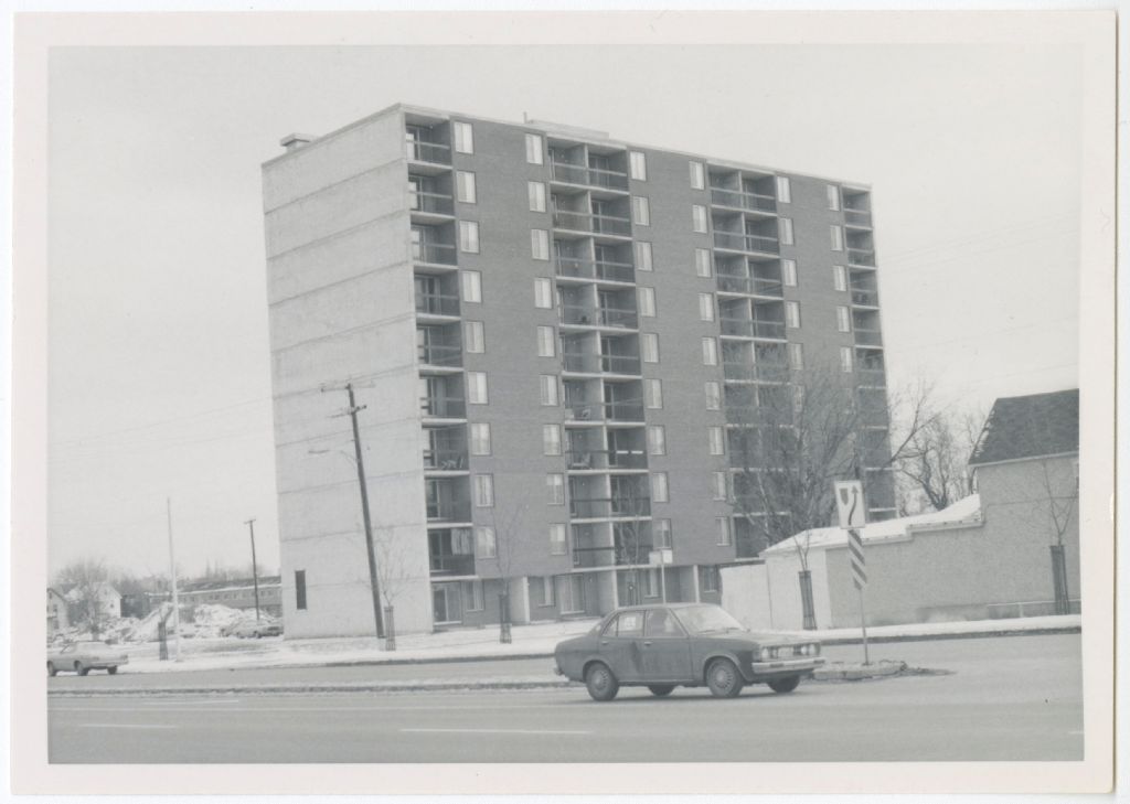 Immeuble résidentiel, [Entre 1969 et 1974], Archives nationales à Gatineau, Fonds Roger Poirier, (07H,P134,S6,SS1,D2,P10), Photographe non identifié.