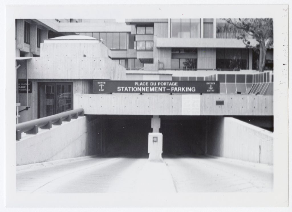 Complexe Place du Portage - Enseigne du stationnement, [Entre 1969 et 198?], Archives nationales à Gatineau, Fonds Roger Poirier, (07H,P134,S6,SS1,D6,P5), Photographe non identifié.