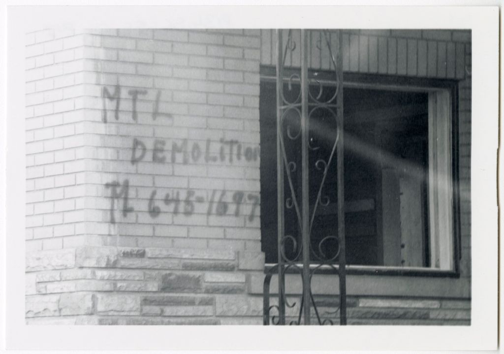 Inscription sur la façade d'une résidence à Hull, [1970-1980], Archives nationales à Gatineau, Fonds Roger Poirier, (07H,P134,S6,SS5,D1,P13), Photographe non identifié.