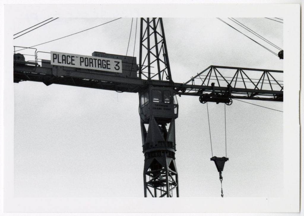 Grue de chantier Place Portage 3, [1970-1980], Archives nationales à Gatineau, Fonds Roger Poirier, (07H,P134,S6,SS6,D1,P1), Photographe non identifié.