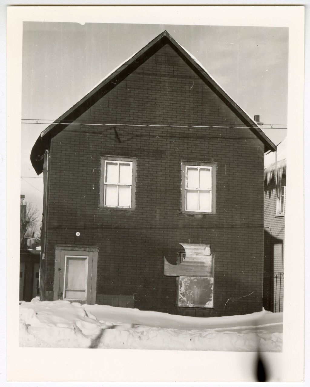 Maison à pignon sur rue recouverte de papier brique - Hull, [1970-1980], Archives nationales à Gatineau, Fonds Roger Poirier, (07H,P134,S6,SS6,D3,P7), Photographe non identifié.