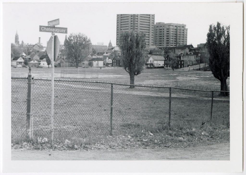 Vue rapprochée du parc Fontaine à Hull, [1970-1980], Archives nationales à Gatineau, Fonds Roger Poirier, (07H,P134,S6,SS7,D2,P3), Photographe non identifié.