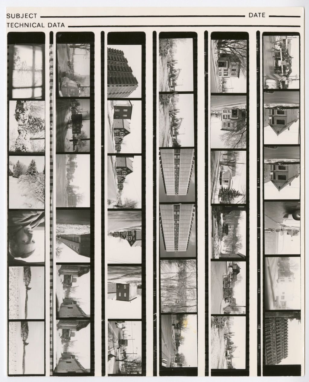 Planches-contact de lieux et de bâtiment en construction, [1970-1980], Archives nationales à Gatineau, Fonds Roger Poirier, (07H,P134,S6,SS13,D1,P5), Photographe non identifié.