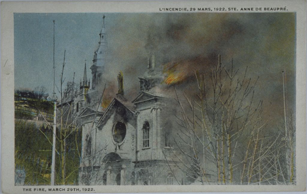 L'incendie, 29 mars 1922, Ste. Anne de Beaupré = The fire, March 29th, 1922, Ste. Anne de Beaupré