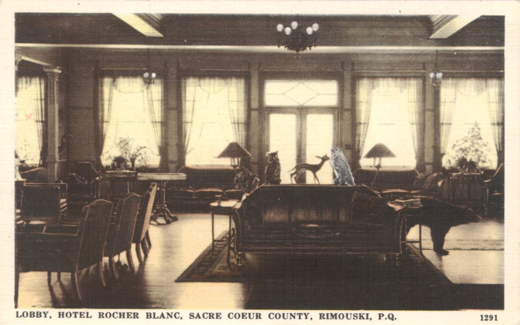 Lobby, Hôtel Rocher Blanc, Sacre Coeur County, Rimouski, P. Q.