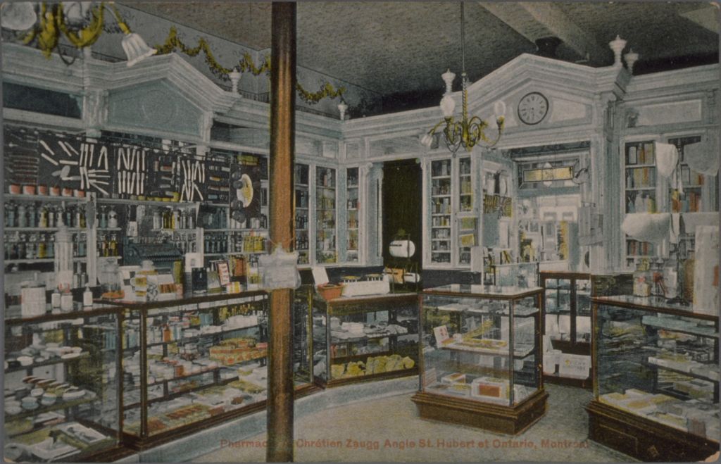 Pharmacie A. Chrétien Zaugg. Angle St-Hubert et Ontario, Montréal