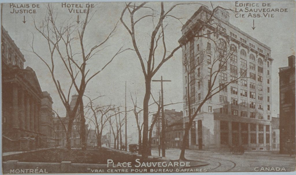 Place Sauvegarde, "vrai centre pour bureau d'affaires" : Montréal, Canada : palais de justice, Hôtel de Ville, édifice de La Sauvegarde cie ass. vie