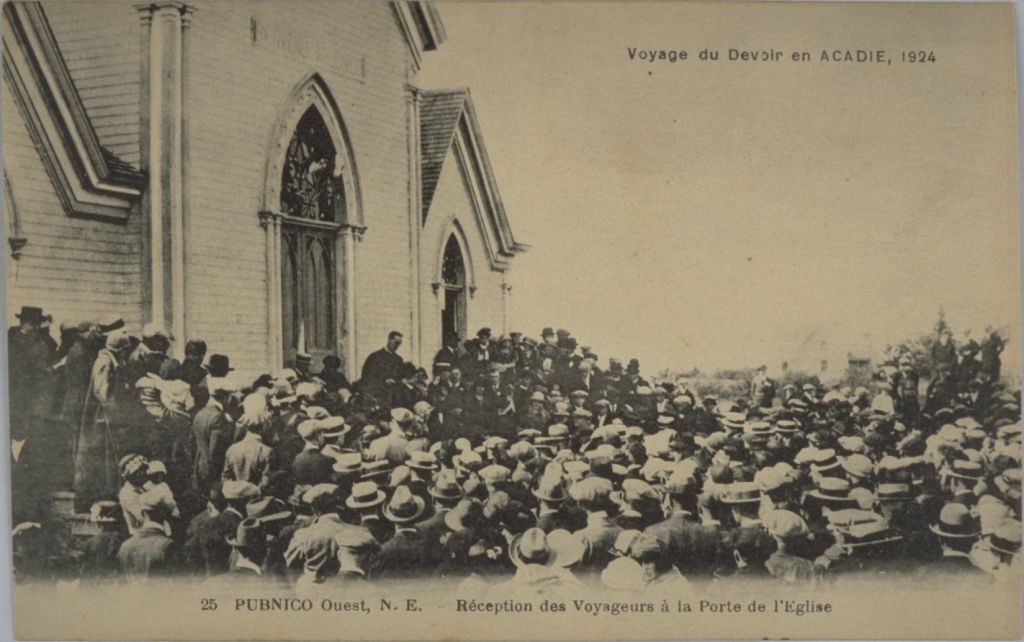 Pubnico Ouest, N.E. - Réception des voyageurs à la porte de l'église