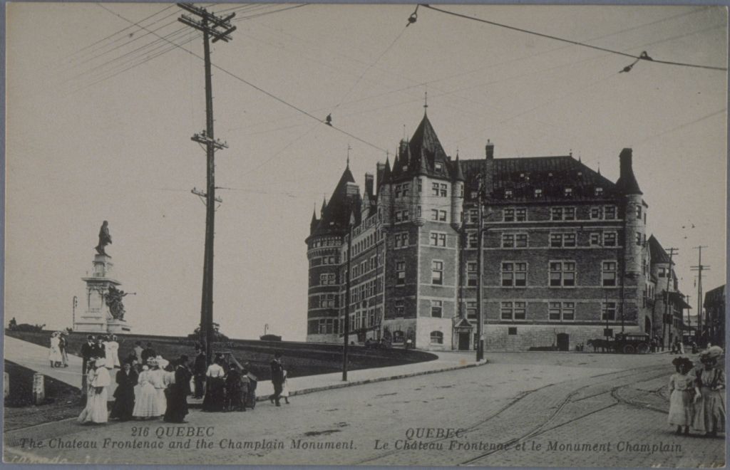 Quebec. The Chateau Frontenac and the Champlain Monument Québec. Le Château Frontenac et le Monument Champlain