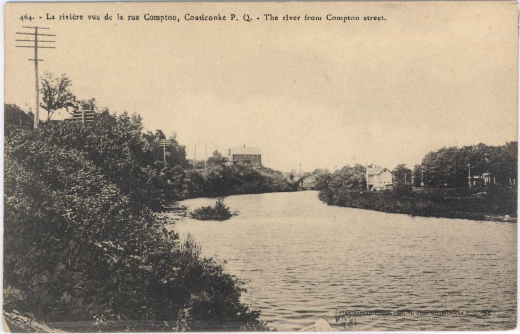 La rivière vue de la rue Compton, Coaticooke [sic] P.Q. - The river from Compton street.